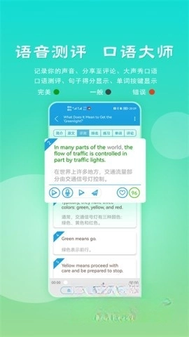 3、自主研发的智能语音评测系统,助您让新闻英语说得更加流畅。