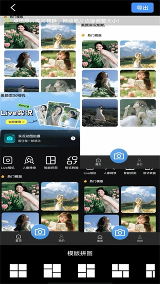 一键拼图:支持多张照片的智能拼图功能,你可以将不同的照片组合在一起,创造出独特的视觉效果。拼图模板丰富多样,满足你的各种创意需求。