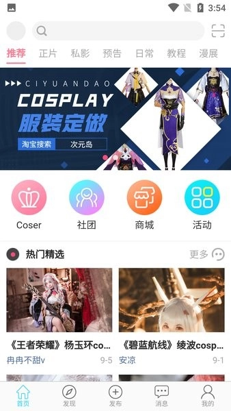 2.支持用户上传自己的 cosplay 作品,展示个性风采。