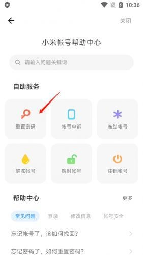2、里面提供账号申诉、解冻、解封、注销等等功能,我们点击重置密码;