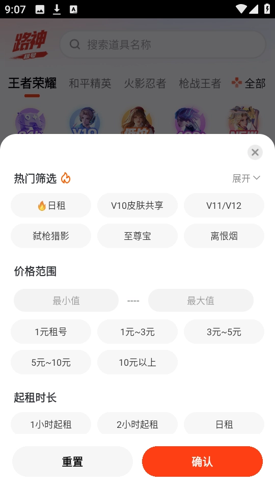 3、可依据价格范围和起租时长迅速筛选符合需求的游戏账号。
