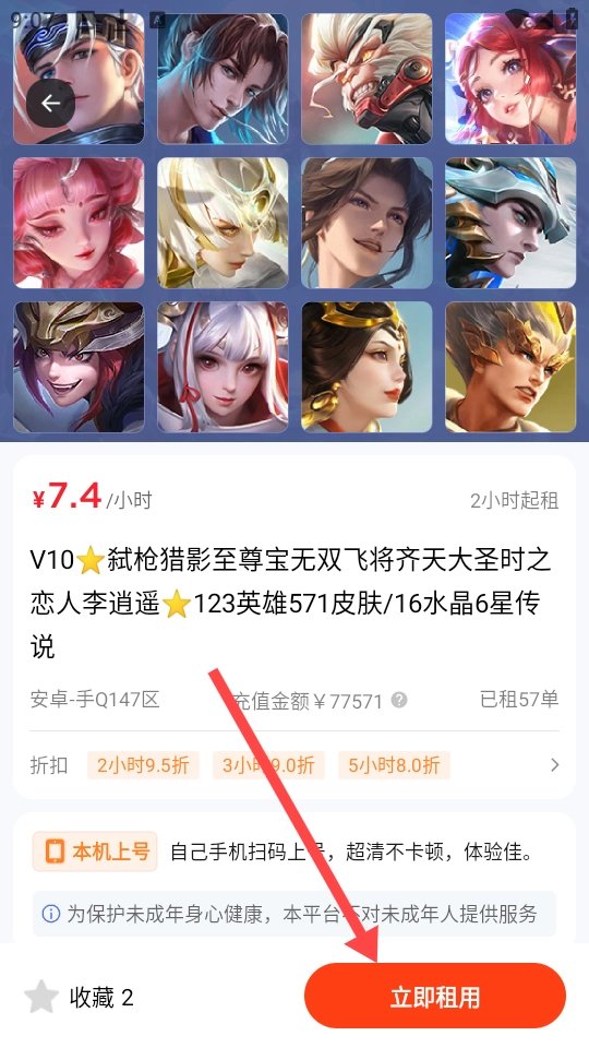 2、通过平台去租到自己心仪的游戏账号进行游戏体验,租号价格低廉,最低0.4元起租。