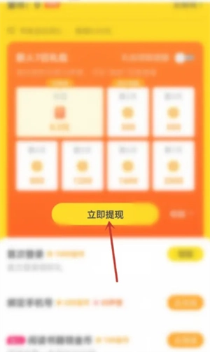在福利页面中,选择【立即提现】选项。