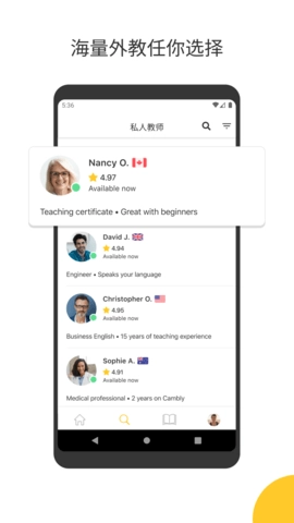 Cambly拥有一支规模庞大的私人教师团队,成员涵盖大学生、教师、商务人士、作家、演员等不同领域的专业人才。不管您有着怎样的学习目标,都能在平台上找到契合需求的私人教师。无论您是想提升口语表达水平,还是期望在写作领域取得进步,Cambly的私人教师都能为您提供专业的辅导与支持。