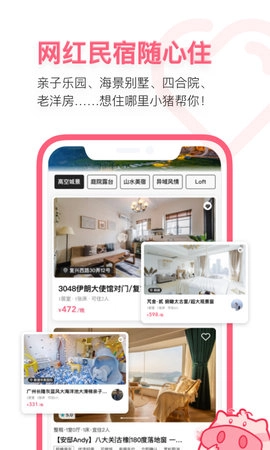 小猪民宿是一款专注于特色住宿预订的应用,为你的旅行增添了更多样化的选择。无论你身处国内还是海外,也无论你在繁华都市还是静谧乡村,小猪民宿都能精准满足你的住宿需求。借助小猪民宿,你可以寻觅到专属的特色居所,畅享一段超乎预期的旅行时光。无论你是外出旅行、商务出差、朋友聚会、情侣约会,亦或是求医、求学、求职,小猪民宿都是你预订住宿的理想之选。快来加入小猪民宿,让每一次出发都充满惊喜!